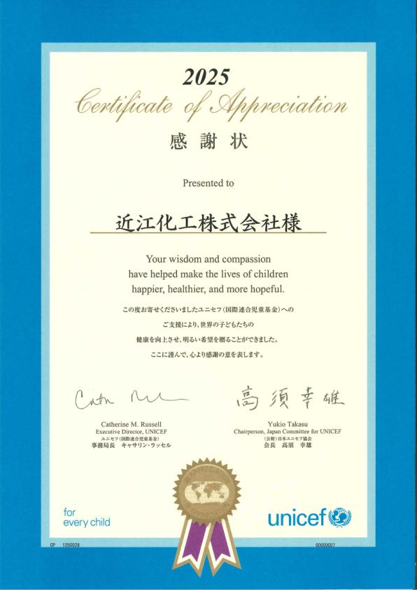 引き続き、近江化工は寄付活動も含めた、SDGsへの取り組みを進めてまいります。